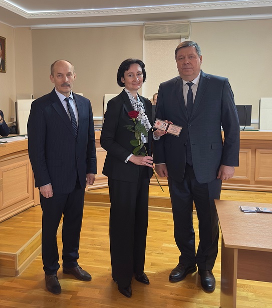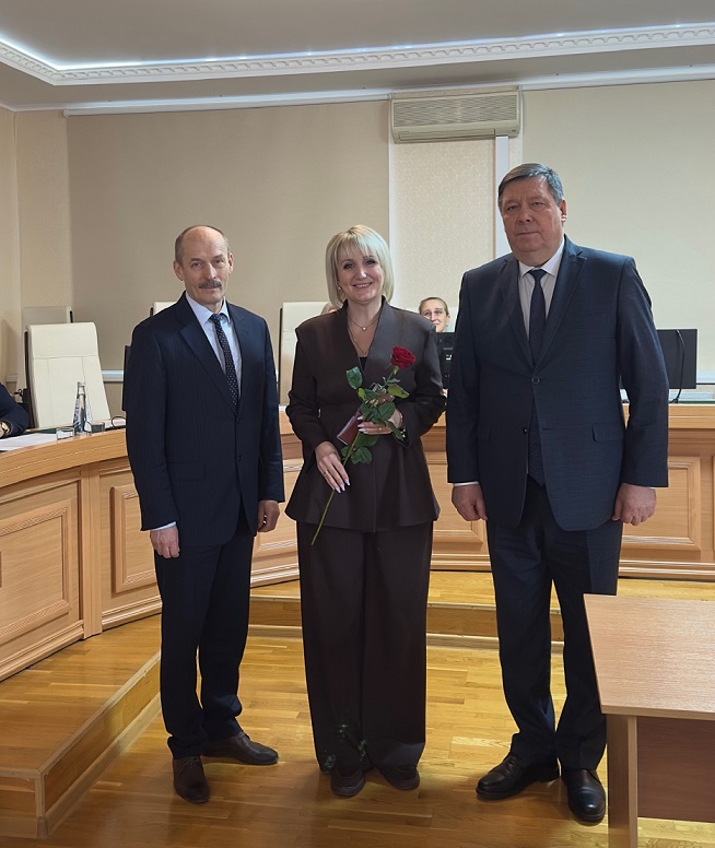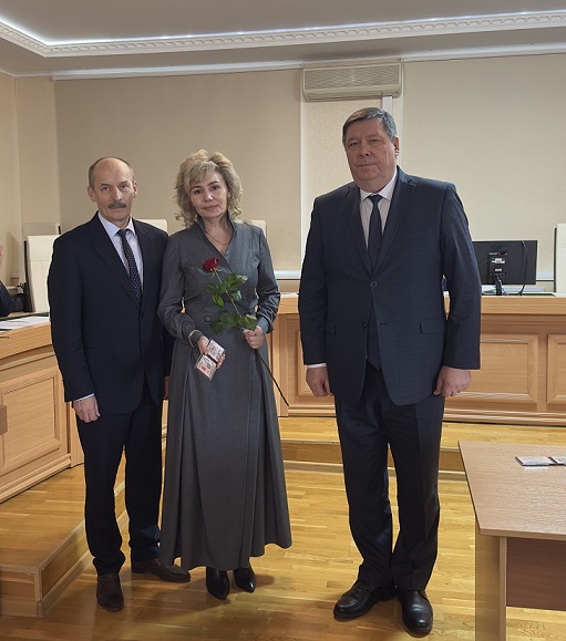 19 декабря 2025 г. Главный федеральный инспектор по Республике Мордовия Гулин А.Н. совместно с Председателем Верховного Суда Республики Мордовия Кияйкиным В.М. в торжественной обстановке вручили удостоверения федеральным судьям, назначенным Указом Президента Российской Федерации от 08.12.2025 № 904 «О назначении судей федеральных судов». В торжественной обстановке удостоверения получили заместитель председателя Октябрьского районного суда г.Саранска Республики Мордовия Антонова А.В., заместитель председателя Пролетарского районного суда г.Саранска Республики Мордовия Салахутдинова А.М., судья Октябрьского районного суда г.Саранска Республики Мордовия Цыбульская М.Х. Валерий Михайлович поздравил коллег с назначением на должность, пожелав им высокого качества в работе, защиту законных интересов, прав и свобод граждан, а также взаимопонимания в коллективе.