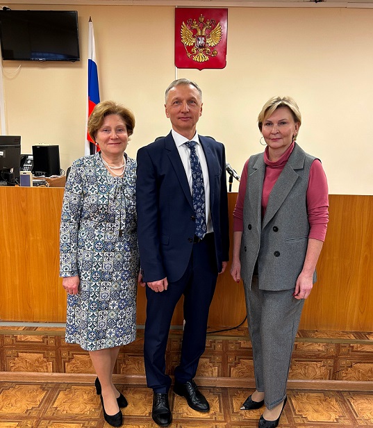 На торжественном собрании, посвященном уходу в почетную отставку, коллектив Ленинского районного суда г.Саранска проводил в почетную отставку судью Бурлакова Игоря Ивановича. Председатель суда Апарин Р.И. огласил решение квалификационной коллегии судей Республики Мордовия об удовлетворении заявления судьи Бурлакова И.И. об уходе в отставку. Руслан Ильич довел до сведения присутствующих послужной список, характеристику судьи, сведения о поощрениях и награждениях за судебную деятельность. Игорь Иванович проработал в Ленинском районном суде г. Саранска в должности судьи более 15 лет. Ранее, с октября 2000 года по ноябрь 2010 года он работал в должности мирового судьи судебного участка № 4 Октябрьского района г. Саранска Республики Мордовия. За время работы судьей Бурлаков И.И. зарекомендовал себя грамотным, квалифицированным юристом, дисциплинированным и трудолюбивым сотрудником. Руслан Ильич огласил права, гарантии, обязанности и ограничения, установленных действующим законодательством для судей, пребывающих в отставке, и выразил в его адрес слова признательности и благодарности за верность избранной профессии, честную и безупречную службу на ниве отправления правосудия, направленную на защиту прав и свобод граждан Республики Мордовия, во имя торжества закона и справедливости. Выступили заместитель председателя суда Бондаренко Н.П., судьи Надежина С.Ю., Кечкина Н.В., которые поблагодарили Бурлакова И.И. за совместную работу, высокий профессиональный уровень, за богатые личные человеческие качества – внимательность и доброту, за многолетний и плодотворный труд в судебной системе Республики Мордовия. Председатель суда Апарин Р.И. от имени коллектива суда пожелал Игорю Ивановичу крепкого здоровья, бодрости духа, благополучия в личной жизни, счастливого отдыха. В ответном слове Бурлаков И.И. выразил слова благодарности всем присутствующим. ![]() |