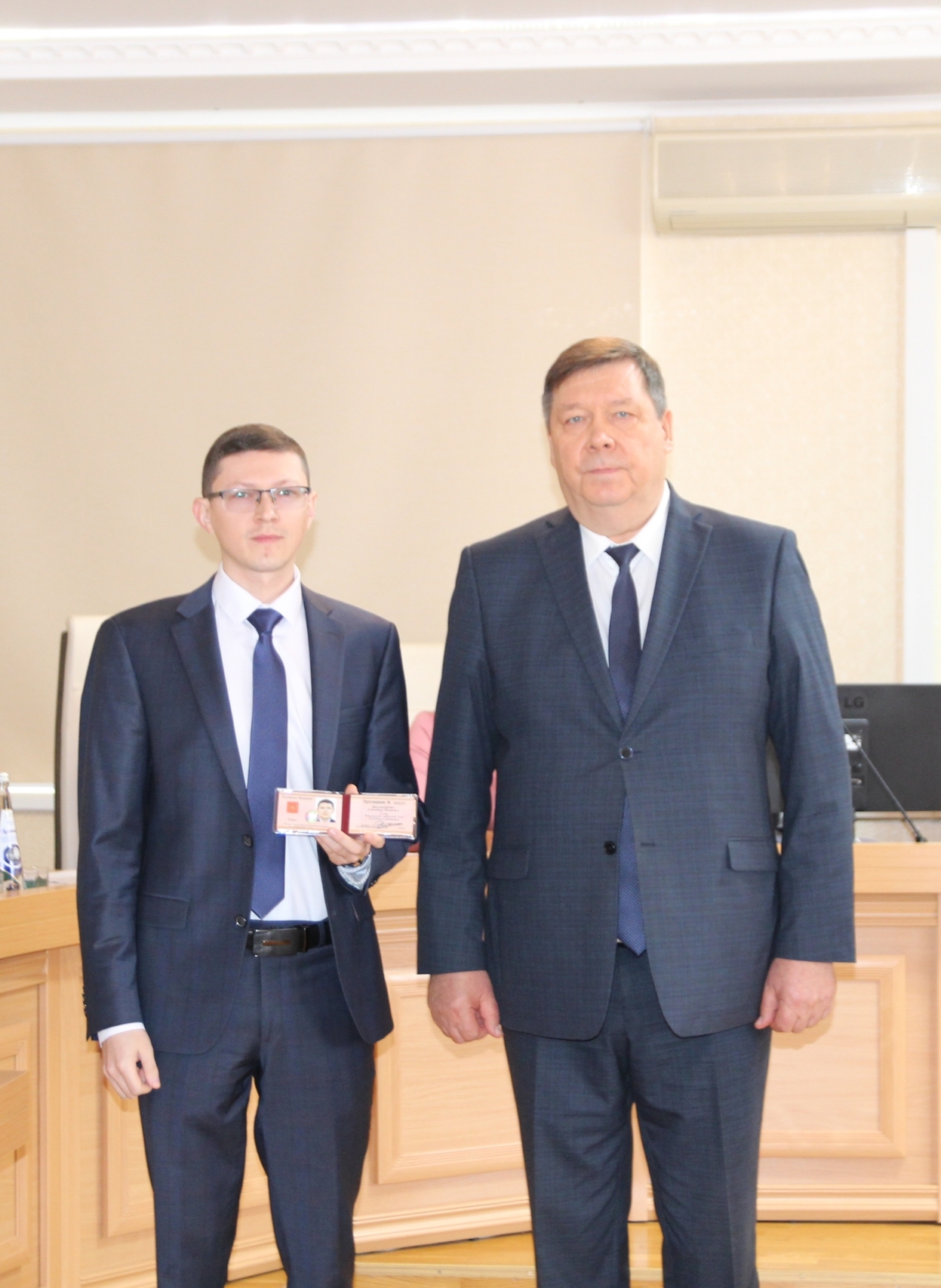 Федеральным судьям Республики Мордовия вручили служебные удостоверения. Документы из рук главного федерального инспектора по Республике Мордовия А.Н. Гулина получили судья Лямбирского районного суда Кержеманкина Д.С., судья Атяшевского районного суда Видманкин А.П. Гулин А.Н. как представитель Президента Российской Федерации в квалификационной коллегии судей Республики Мордовия поздравил назначенных судей, призвал к ответственному отношению при осуществлении правосудия и вынесению справедливых решений. Ранее вновь назначенные на должность судьи приняли присягу в коллективах районных судов республики в торжественной обстановке. ![]() ![]() |
